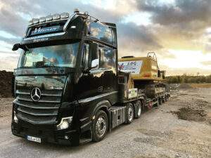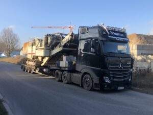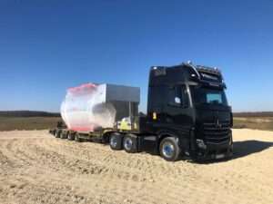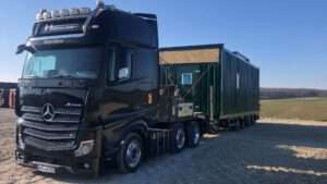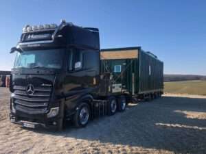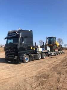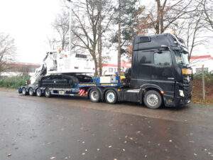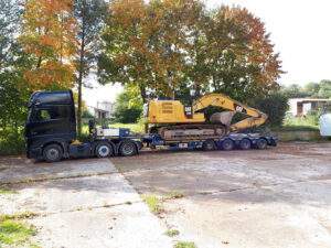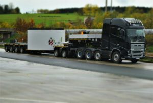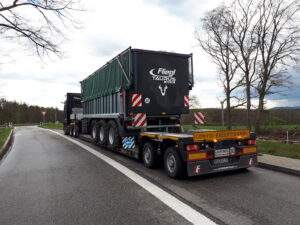 Mit den in unserem 2 Achs Tiefbetten verbauten 12 to Achsen sind diese optimal für den Transport von großen, aber auch schweren Ladungen ausgelegt. Mit dem „teleskopierbaren“ Bett mit einer Gesamtlänge von bis zu 12,36 m lassen sich auch 40´ Container mit überhöhe transportieren.